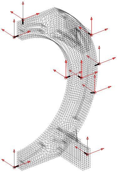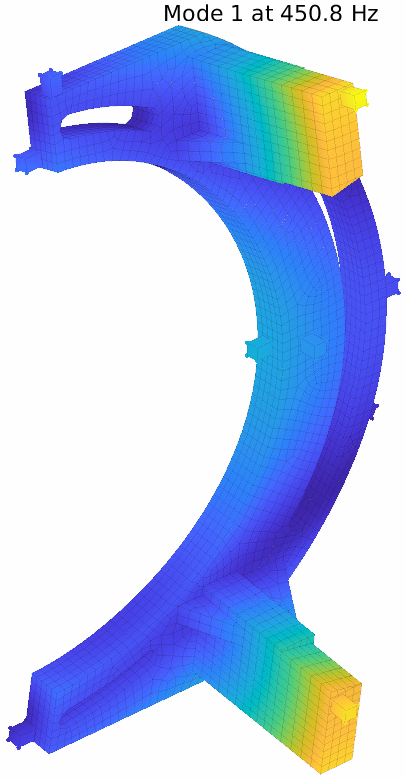 🎯 Our working example is a bracket component we call the banana bracket, designed to be representative of an automotive component. It is made of steel and weighs 5.12 kg. To be able to observe properly all its flexible modes under 6kHz, 9 triax accelerometers are necessary. The chosen position ensures a clean AutoMAC matrix, and the associated fixed sensor modes are close to 2kHz, which gives a good confidence in the ability to observe any low frequency mode in the case where the model was significantly offset.