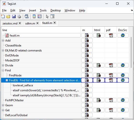 sdtweb _taglist % Open taglist of current editor file (if not docked) sdtweb _taglist feutil % Open taglist of feutil