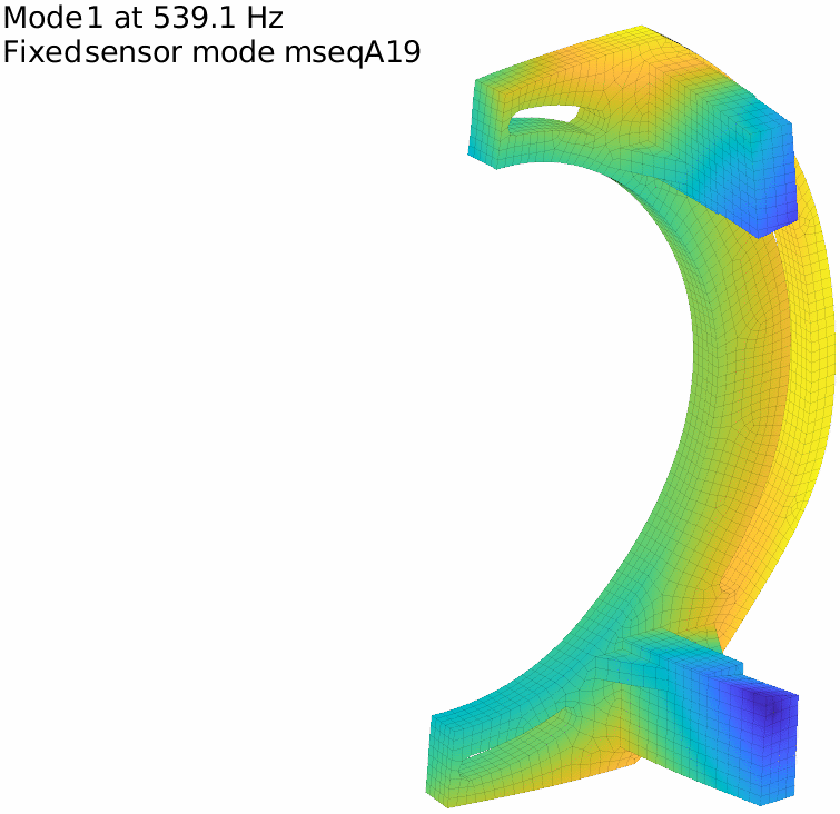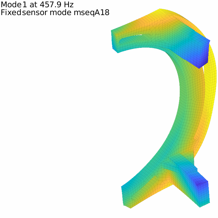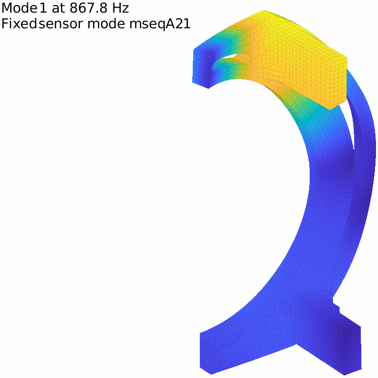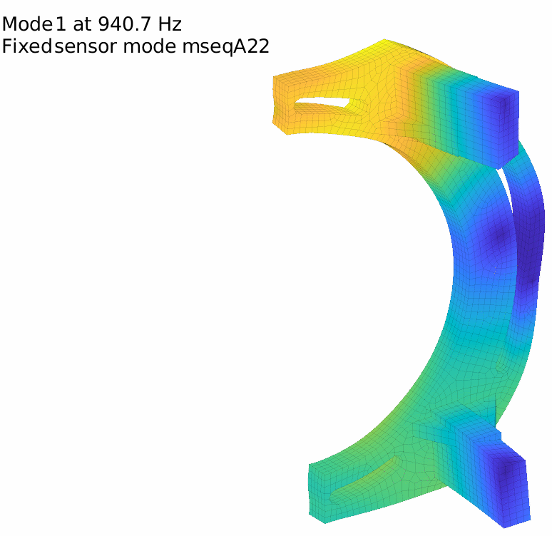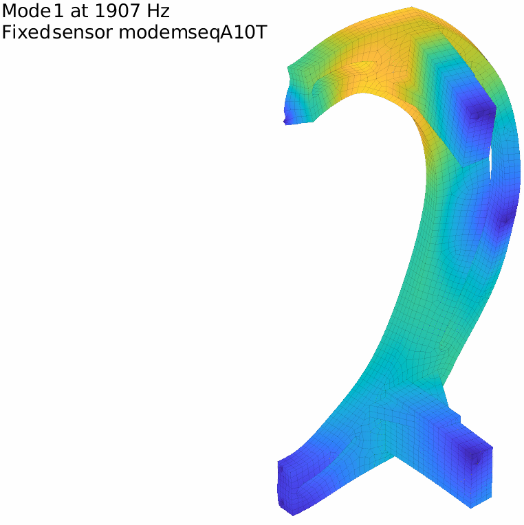 This post topic is about using sensors in a model, and how this can be used to optimize a test campaign. In SDT, that provides many tools associated with experimental correlation, sensors are natively handled through a Case entry of type SensDof, where every imaginable type can be defined. Our definition approach is based on a tabulated list documented in https://www.sdtools.com/helpcur/base/scell.html#scell.